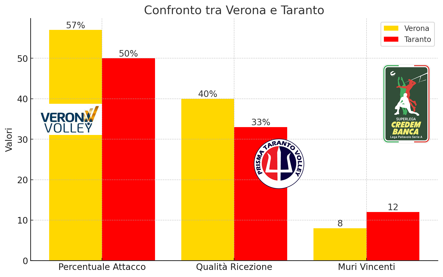 L'analisi del match evidenzia un incontro caratterizzato da un grande equilibrio, come dimostrano i numeri e il risultato finale. Taranto ha mostrato una certa superiorità nel differenziale tra ace e battute sbagliate, con un -9 rispetto al -10 di Verona.