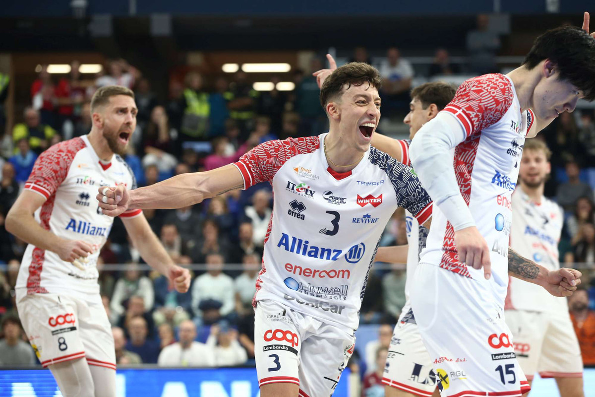 MILANO – Un debutto al cardiopalma per l’Allianz Milano, che al termine di due ore e trentaquattro minuti di battaglia supera la Valsa Group Modena 3-2 (23-25, 17-25, 25-22, 37-35, 15-11) nella gara d’esordio della Superlega Credem Banca 2025/26. Una sfida infinita, segnata da un quarto set da record (37-35, ventesimo parziale più lungo nella storia del massimo campionato) e da una rimonta da applausi per la squadra di coach Piazza, trascinata da un monumentale Reggers (28 punti) e dal giovanissimo Barbanti, al debutto da titolare in regia al posto dell’infortunato Cachopa.