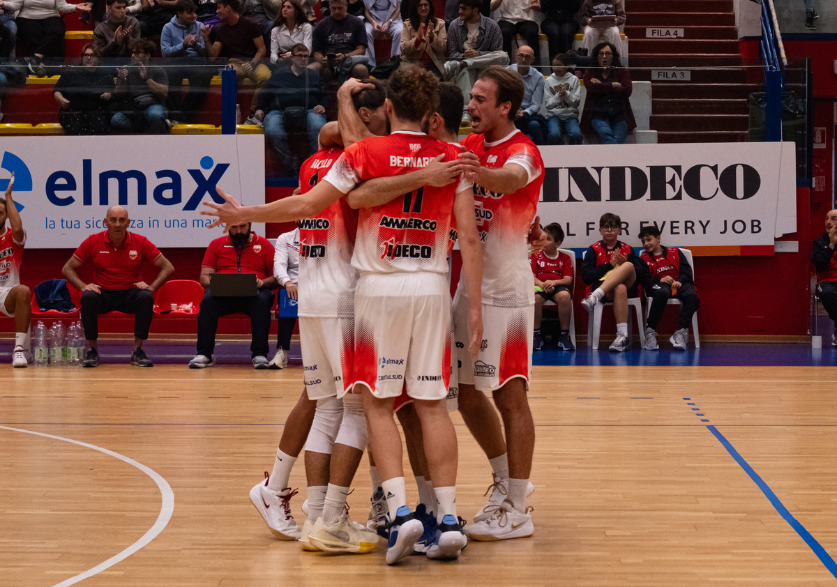 Nel primo set, la Indeco parte subito aggressiva: il muro di Ruggiero e l’ace di Incampo tracciano la strada. I biancorossi costruiscono il vantaggio grazie alla solidità difensiva e a un attacco più efficace, chiudendo 25-19 con un servizio vincente di Bernardi.