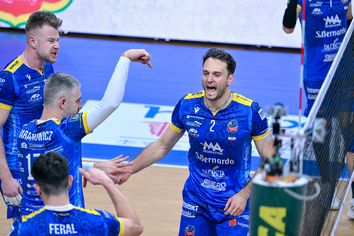 MA Acqua S.Bernardo Cuneo: Baranowicz 2, Zaytsev 10, Codarin 11, Feral 22, Sedlacek 12, Stefanovic 4, Copelli 1, Cavaccini (L), Bonomi 0, Oberto 0, Sala (L), Cattaneo 6. N.E. Giraudo, Colasanti. All. Battocchio.