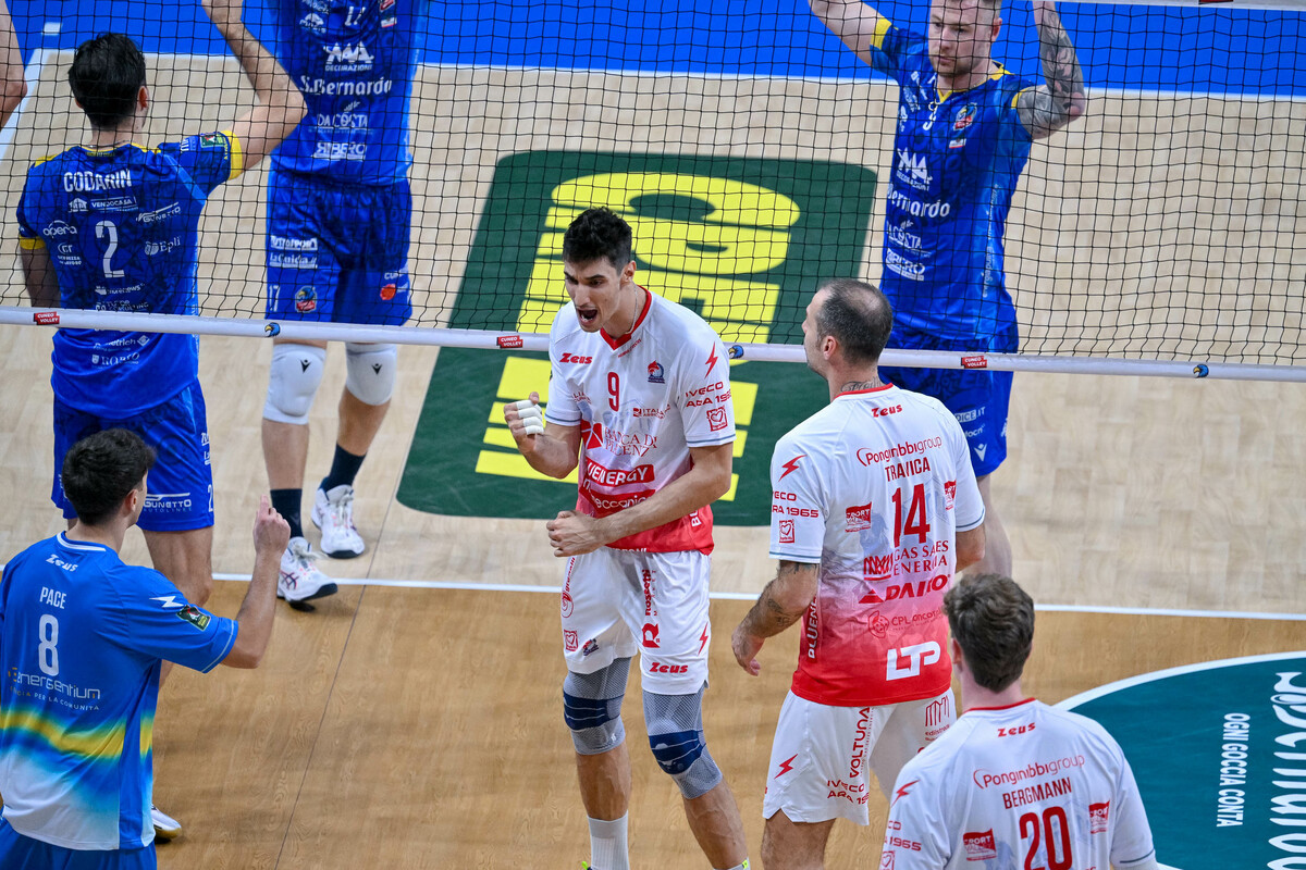 Nel secondo set Cuneo prende subito il comando grazie a un ispirato Feral, autore di quattro punti nei primi scambi. L’attacco dei piemontesi fa la differenza mentre Piacenza resta in partita solo per gli errori avversari. Sul 11-5 Boninfante inserisce Gutiérrez per Bergmann, ma la mossa non cambia l’inerzia: Feral continua a incidere, Baranowicz smarca con grande lucidità i suoi attaccanti e Cuneo allunga fino al 18-12. Leon, subentrato a Bovolenta, fatica e commette errori pesanti (19-12). La difesa piemontese, con Zaytsev e Baranowicz protagonisti, costruisce due punti decisivi di Sedlacek (24-17). Il set si chiude 25-17, 2-0 Cuneo.
