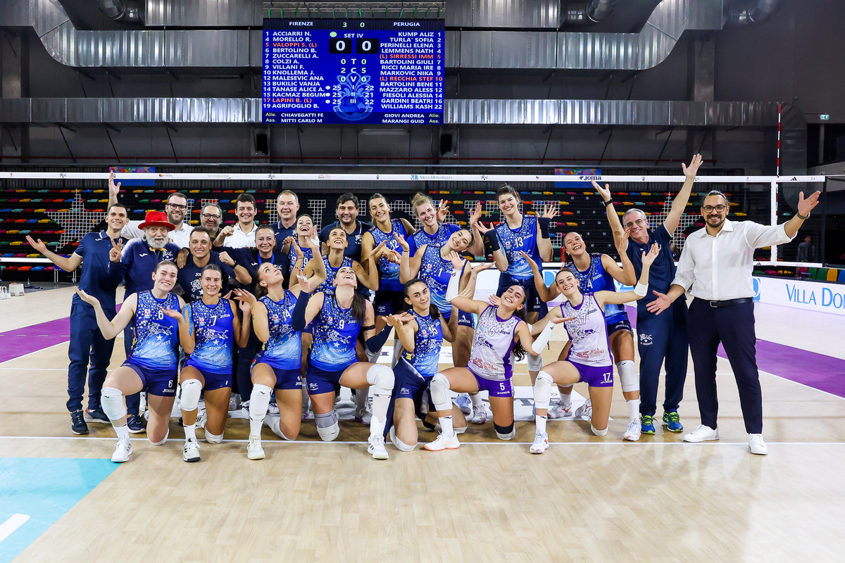 Sorride anche Il Bisonte Firenze (foto), che al Pala BigMat ha superato 3-0 la Bartoccini-Mc Restauri Perugia (25-22, 25-21, 25-22). Le toscane, reduci da un ciclo di gare serrato, hanno mostrato compattezza e continuità, trascinate da Knollema (15 punti), Acciarri (12 con 4 ace), Villani (11) e dall’MVP Zuccarelli (11). "Le ragazze sono state bravissime" – ha dichiarato coach Chiavegatti – "sono arrivate stanche ma hanno dato tutto fin dall’inizio. Zuccarelli? Mercoledì ci aveva già aiutato a girare la partita e oggi ha confermato la sua crescita". Dall’altra parte, Sirressi ha espresso amarezza: "È una sconfitta che fa male. Siamo state poco determinate, ma deve servirci da lezione".