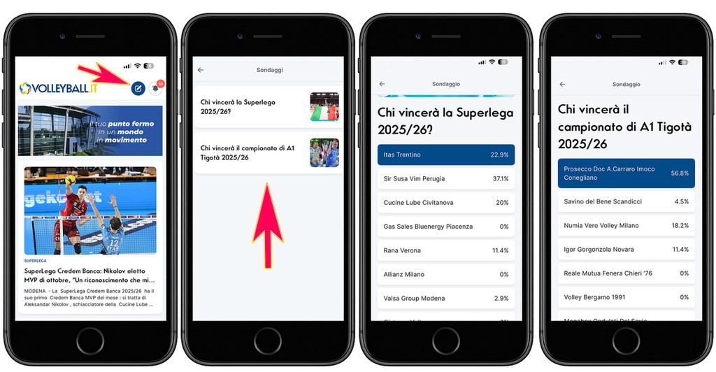 I sondaggi restano aperti fino al 9 novembre all’interno dell’app Volleyball.it+, dove i tifosi possono continuare a esprimere il proprio voto per scegliere chi, secondo loro, conquisterà il prossimo Scudetto maschile e femminile.