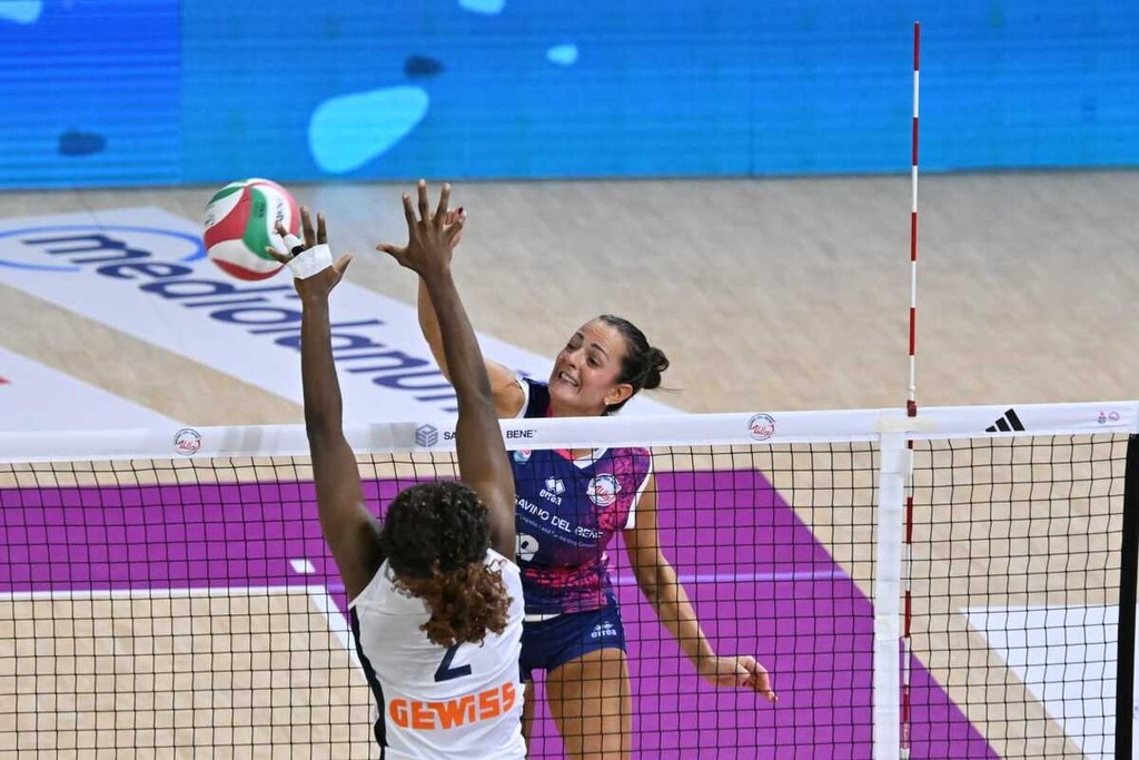 BERGAMO: Eze 3, Mosser 9, Strubbe 3, Kipp 13, Mlejnkova 2, Manfredini 7, Armini (L), Bolzonetti 8, Weske, Carraro, Meli. Non entrate: Micheletti, Cese Montalvo, Ferrario (L). All. Parisi.