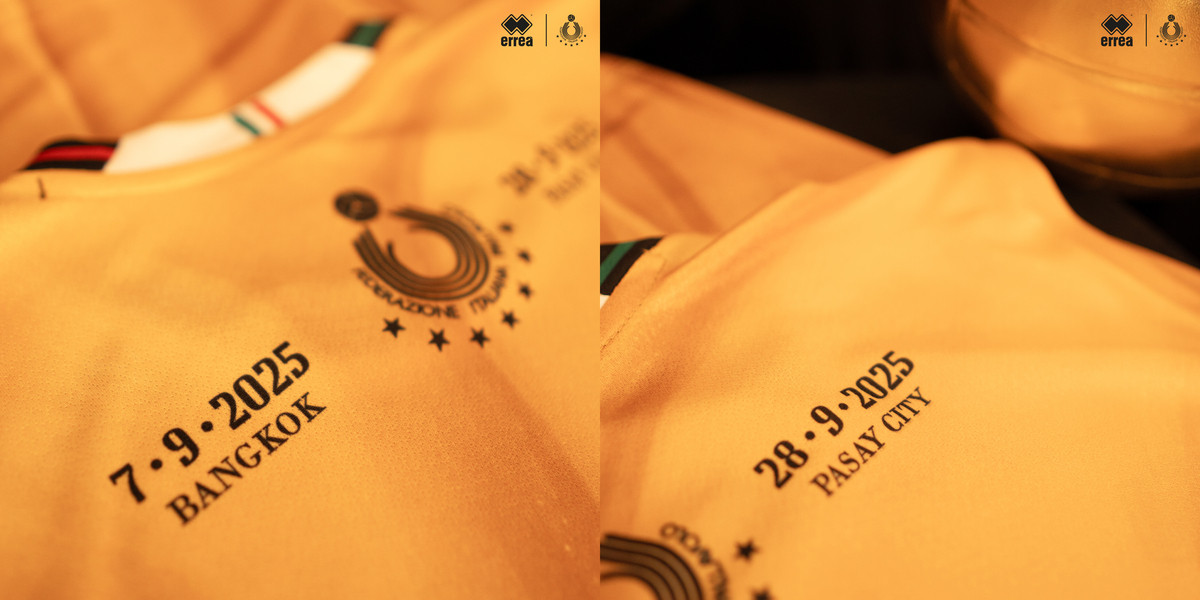 La canotta si presenta in un oro intenso, valorizzato da dettagli neri e da un elegante effetto panneggio. Sul petto campeggia il nuovo logo FIPAV a sette stelle, a testimoniare anche i trionfi mondiali di Bangkok (7 settembre 2025, femminile) e Pasay City (28 settembre 2025, maschile), richiamati sul retro della divisa con le due date simbolo stampate in nero.