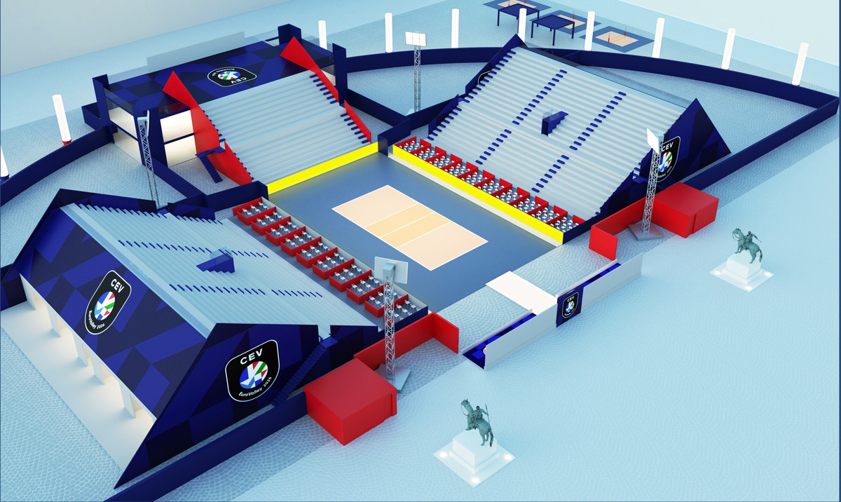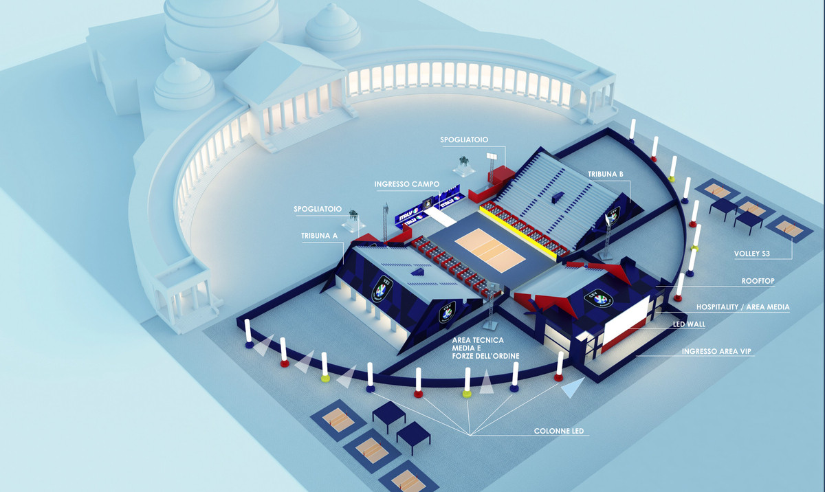 MODENA - Nel corso della conferenza stampa di fine anno del Presidente Fipav Giuseppe Manfredi è stato presentato i il rendering della struttura temporanea che ospiterà l’esordio degli azzurri contro la Svezia a Piazza del Plebiscito il 10 di settembre a Napoli.