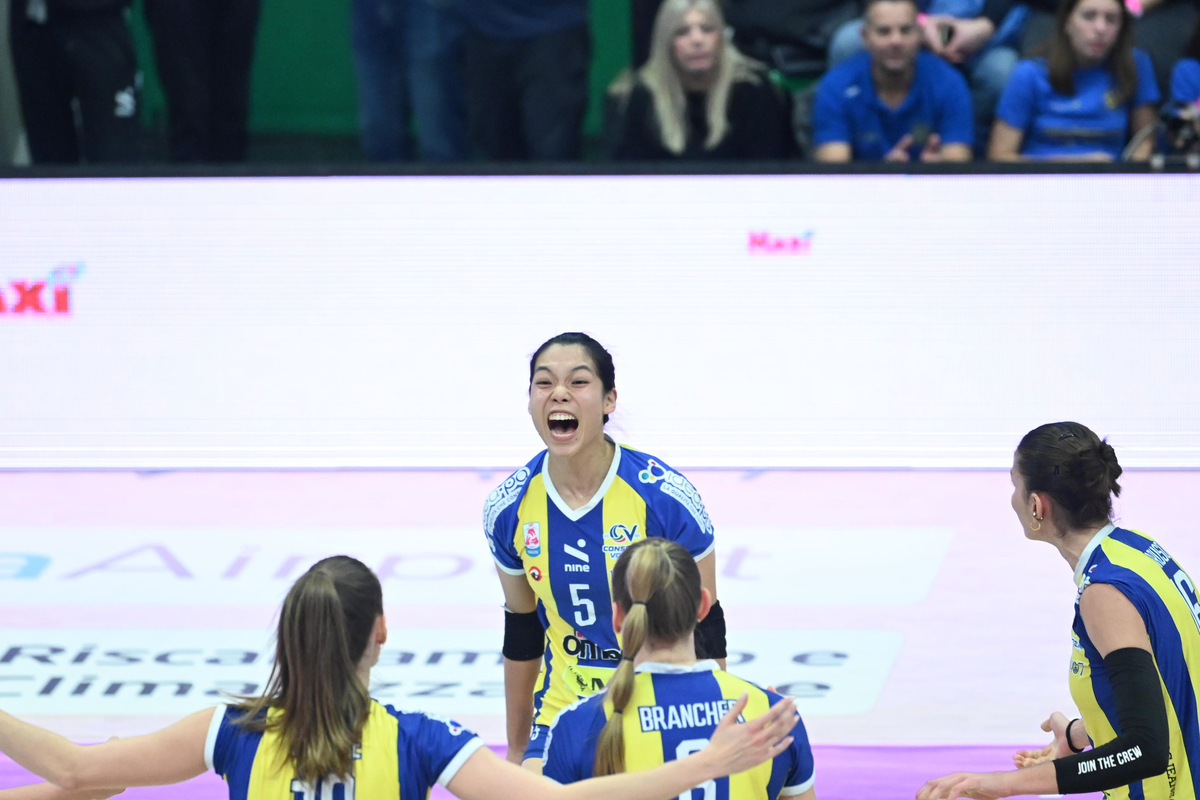 PROSECCO DOC A.CARRARO IMOCO CONEGLIANO: Braga Guimaraes 13, Lubian 10, Adigwe 17, Zhu 12, Chirichella 1, Ewert 2, Scognamillo (L), Haak 2, Daalderop, De Gennaro (L), Wolosz, Sillah, Munarini, Fahr. All. Santarelli.