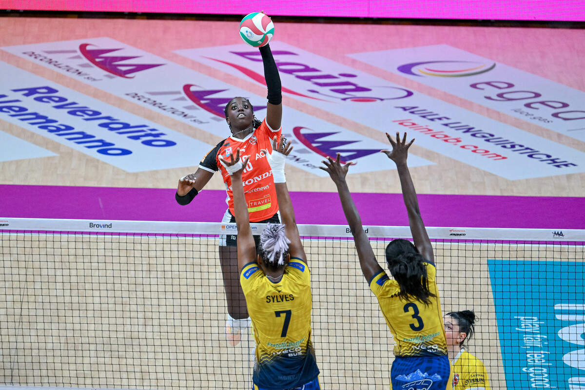 Honda Cuneo Granda Volley: Rivero 10, Keene 16, Signorile 2, Pucelj 19, Cecconello 5, Diop 19, Bardaro (L), Allaoui, Koulisiani, Magnani, Marring, Atamah. All. Salvagni.