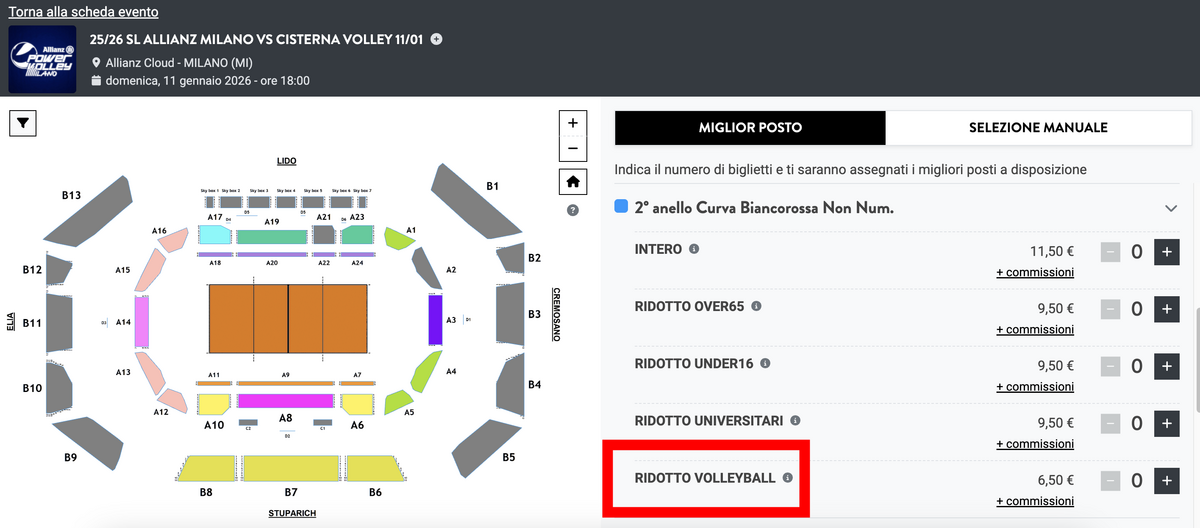 MILANO – L'app Volleyball.it+ ti porta all'Allianz Cloud con uno sconto del 50% sui biglietti del 2° anello Curva Biancorossa Non Numerata