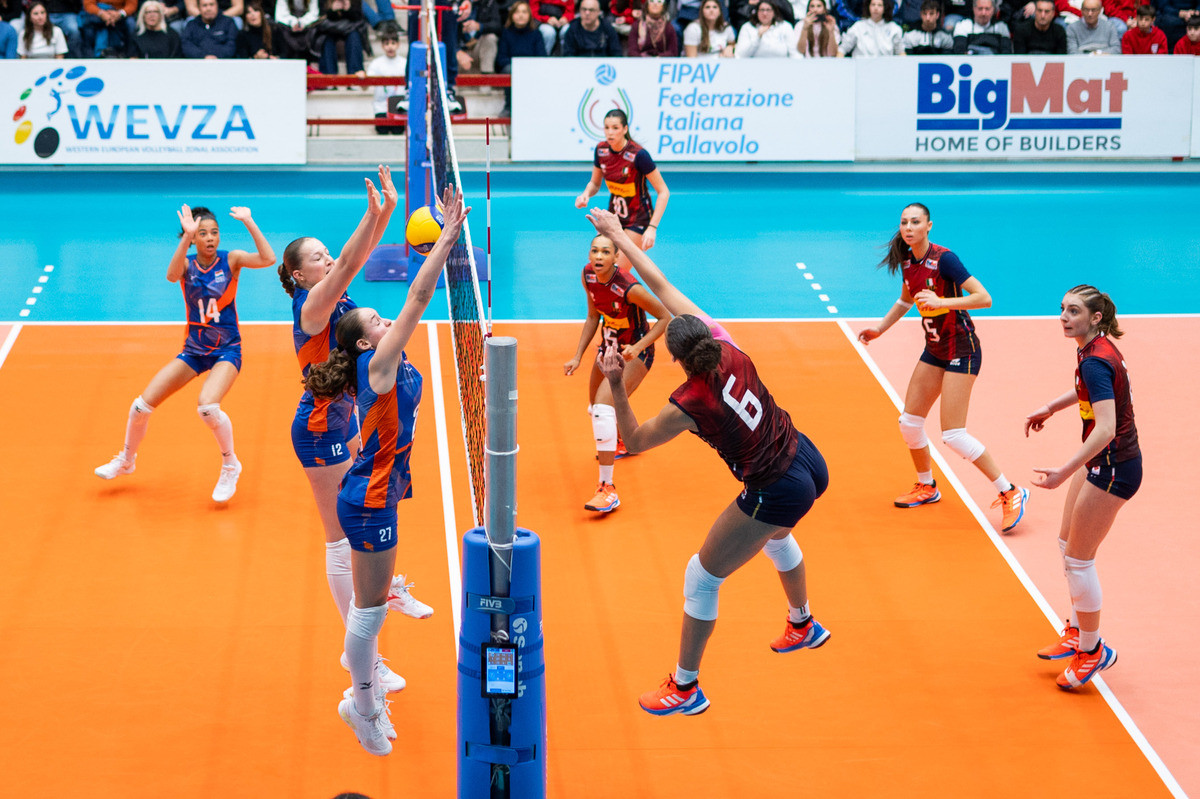 La partita del Pala Preziuso si è aperta in salita. Nel primo set l’Olanda ha spinto subito (time-out azzurri sul 7-12 e sul 12-17), volando fino al +8 (12-20). L’Italia ha reagito riducendo il gap fino al 21-23, ma nel finale non è arrivato l’aggancio: un attacco di Raatjes ha chiuso il parziale 22-25.