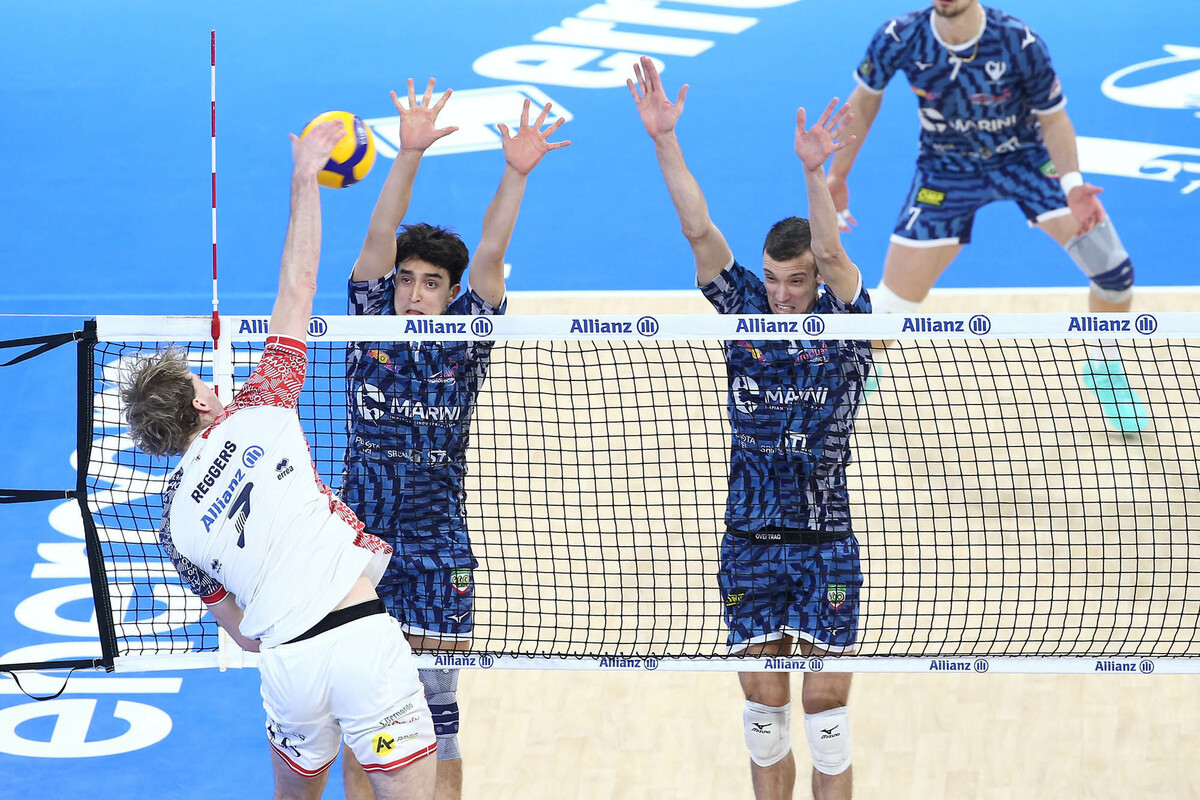 In avvio Piazza riparte dai titolari con Kreling-Reggers in diagonale, Recine e Ichino in banda, Caneschi e Masulovic al centro, Catania libero. Morato sceglie Fanizza-Barotto, Plak e Mazzone centrali, Lanza e Bayram schiacciatori, Currie libero.