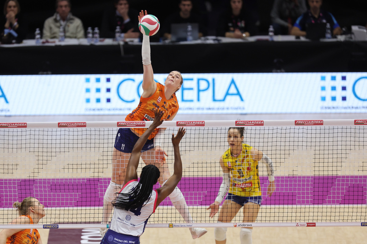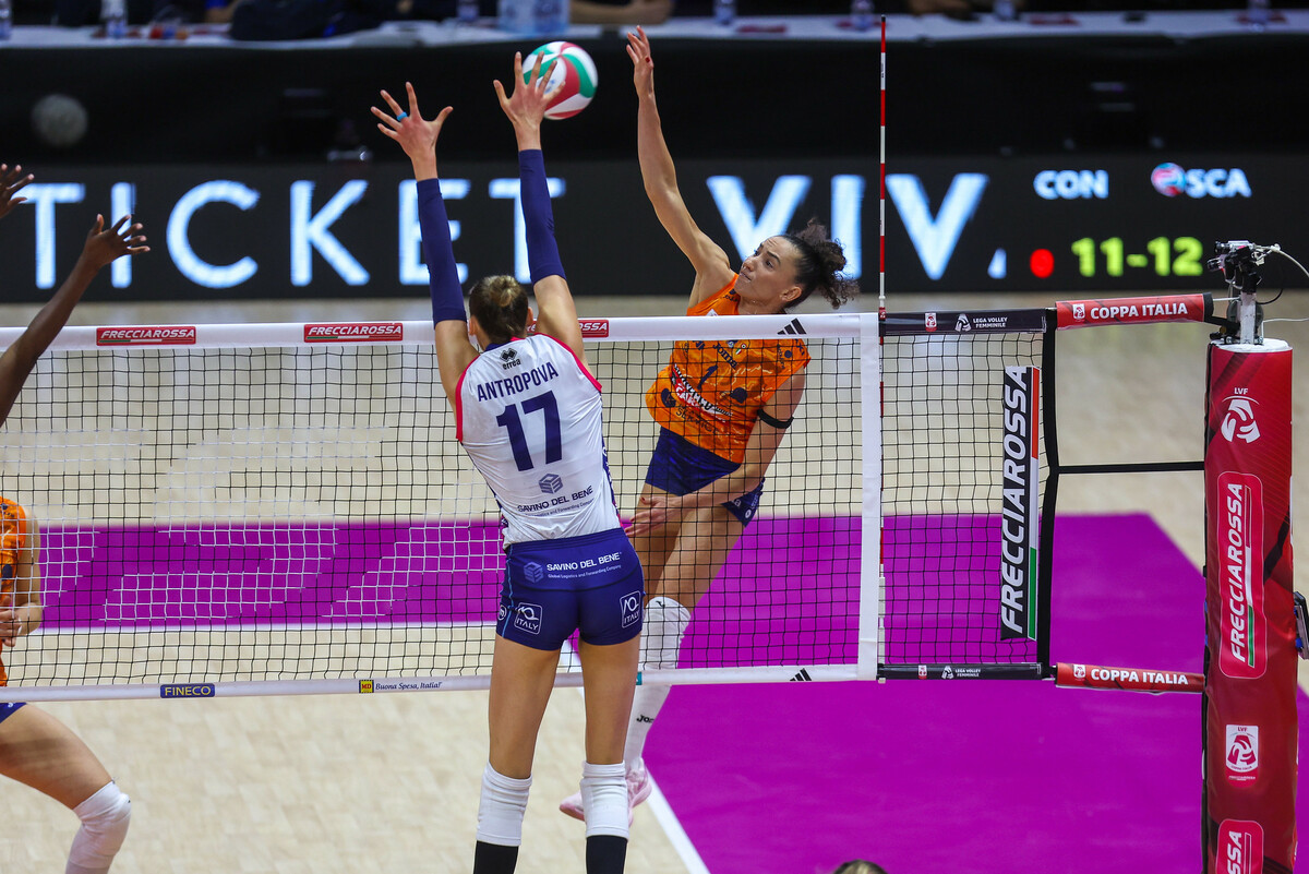 La partita Nel primo set Conegliano scappa 4-0, poi cala in cambio palla e Scandicci rientra fino al sorpasso (10-11) con Antropova. La pressione al servizio delle toscane fa male in ricezione e porta al +3 (13-16), ma le pantere resistono, annullano tre set ball e la spuntano ai vantaggi 31-29 con il muro a due di Gabi e Fahr su Antropova.