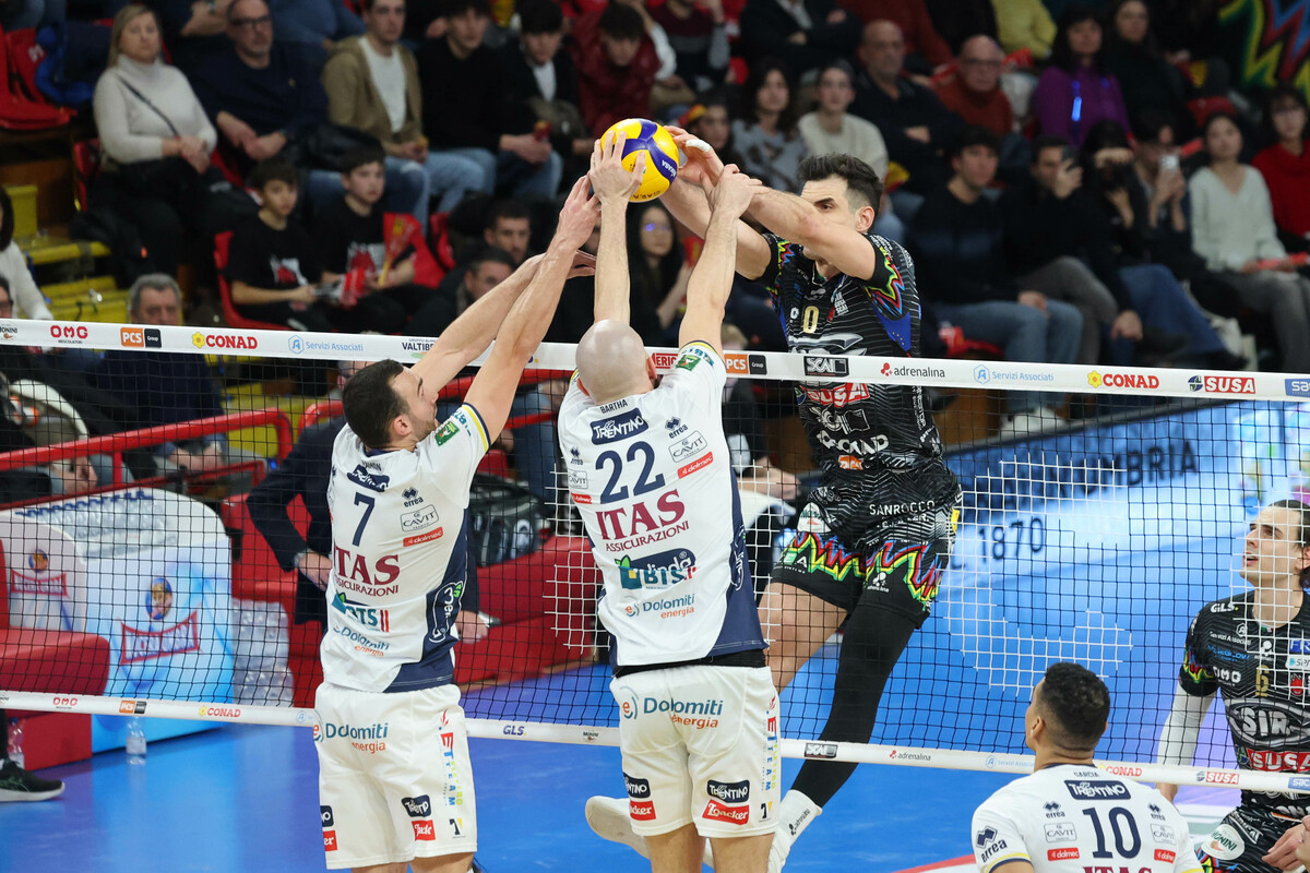 La partita cambia nel secondo set, quello in cui Perugia inizia a risalire la china: equilibrio più lungo, scambi punto a punto e progressiva crescita della Sir nel muro-difesa. Trento resta dentro e arriva a giocarsela sul filo, ma Perugia la spunta 25-23, pareggiando i conti e trovando l’aggancio della gara.