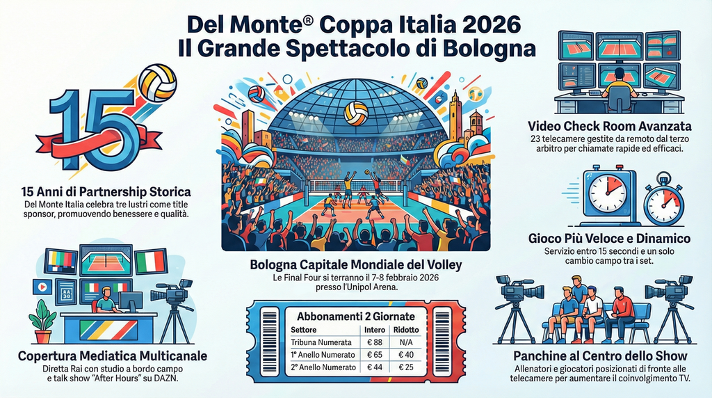 BOLOGNA - Il weekend del 7 e 8 febbraio 2026 non sarà una semplice parentesi nel calendario sportivo, ma il momento in cui l’Unipol Arena di Bologna diventerà ufficialmente il "centro del mondo" della pallavolo. Quattro big — Itas Trentino, Gas Sales Bluenergy Piacenza, Sir Susa Scai Perugia e Rana Verona — si contenderanno un trofeo che è ormai la sintesi perfetta tra sport d'élite, innovazione tecnologica e intrattenimento globale.