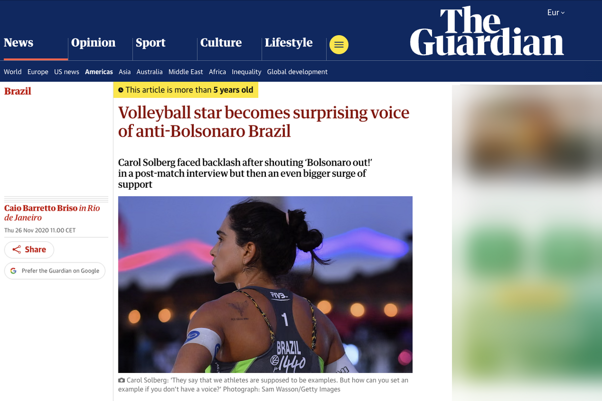 All’epoca la Confederazione brasiliana di pallavolo aveva accusato Solberg di “macchiare l’immagine dello sport”. Lo stesso articolo del Guardian sottolineava però come diversi atleti che avevano espresso pubblicamente sostegno all’allora presidente del Brasile Jair Bolsonaro non fossero incorsi in sanzioni o richiami disciplinari.