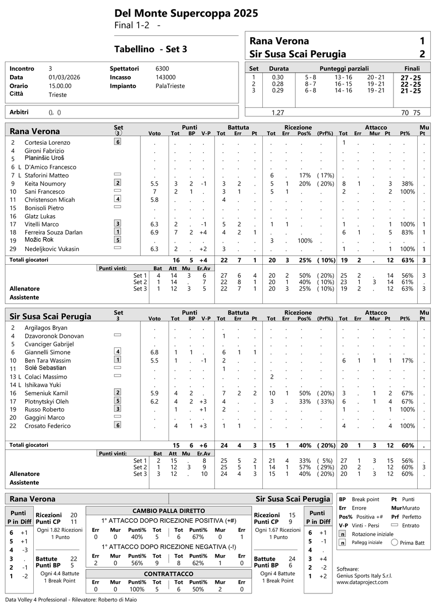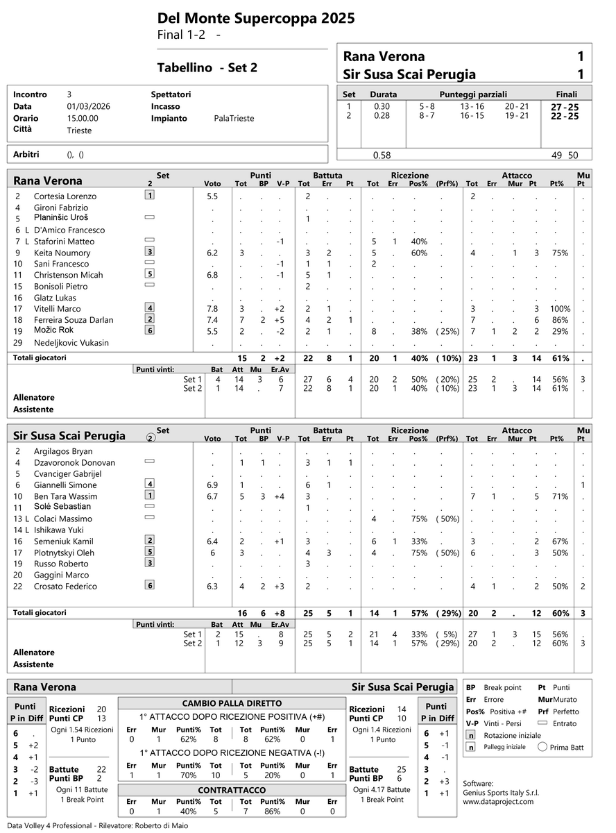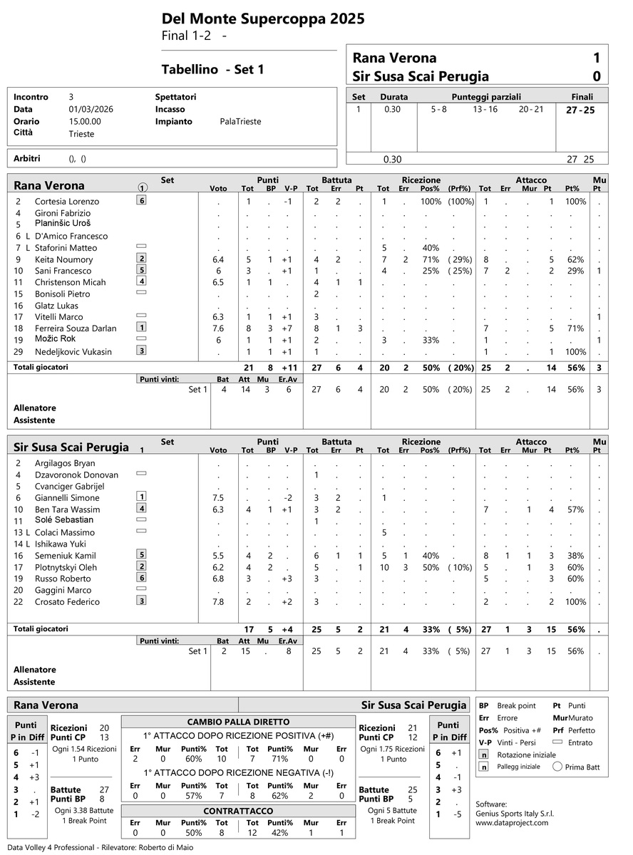 TRIESTE - La finale di Del Monte Supercoppa tra Rana Verona e Sir Susa Scai Verona.