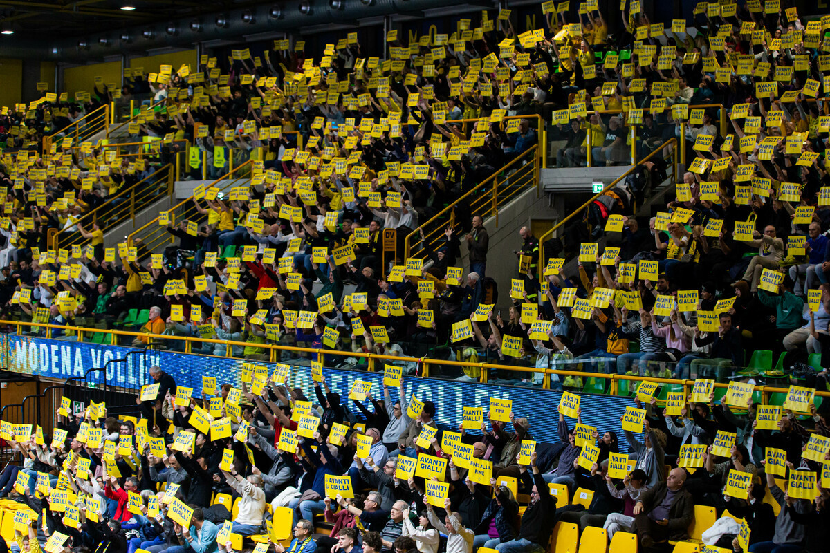 Nel quinto set Leon resta in campo per Bovolenta. Dopo un servizio sbagliato di Buchegger, colpito anche da crampi, arriva un cartellino rosso a Simon per proteste verso la tribuna. Piacenza passa avanti con il muro di Gutierrez (4-5), ma Mati rallenta Simon e la pipe di Davyskiba vale il 7-5. Luca Porro cerca il colpo sulle mani del fratello Paolo, che però chiude il muro del 7-7. Al cambio campo Modena è avanti 8-7, ma Gutierrez trova l’ace su Davyskiba per il 8-9. Piacenza scappa 9-11, poi Luca Porro riporta la parità con l’ace su Gutierrez (11-11). Tizi-Oualou mura Mandiracı per il sorpasso modenese, ma il finale resta punto a punto. Luca Porro firma il 14-13, Piacenza annulla e si porta avanti 14-15 con Simon dopo la difesa di Comparoni, prima del definitivo epilogo favorevole ai gialloblù che chiudono 17-15.