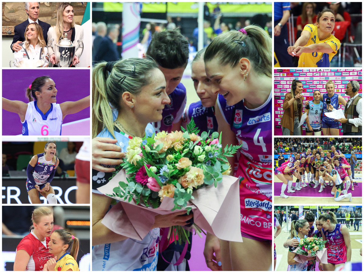 Poi ha spiegato le ragioni della sua scelta: “Sono contenta perché è stata una bella partita e finire in questo tempio del volley (il Palaverde di Villorba, ndr) non è male. Non so ancora cosa farò adesso. Chiudo più che altro perché mio figlio questo anno lo ha sofferto molto, piangeva ogni volta che me ne andavo e quindi è stato molto impegnativo per lui. Adesso voglio dedicarmi a lui. Ringrazio mio marito (Enzo Barbaro, AD della Lega Volley femminile) e mia mamma che mi hanno aiutato tantissimo, e tutti quelli che in questi tantissimi anni di Serie A mi hanno supportata e hanno creduto in me. Così come tutte le mie compagne, di quest’anno e di tutti gli anni”.