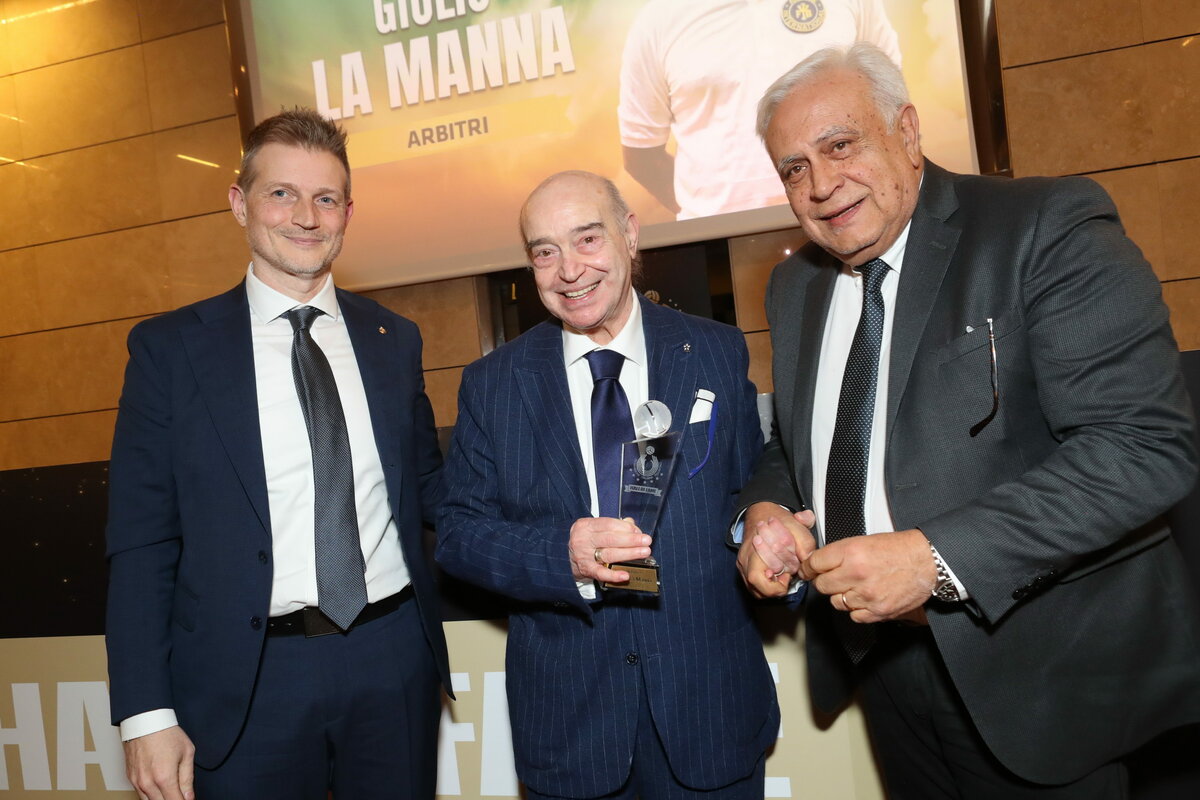 Arbitri: Giulio La Manna premiato dai vice presidenti federali Massimo Sala e Elio Sità