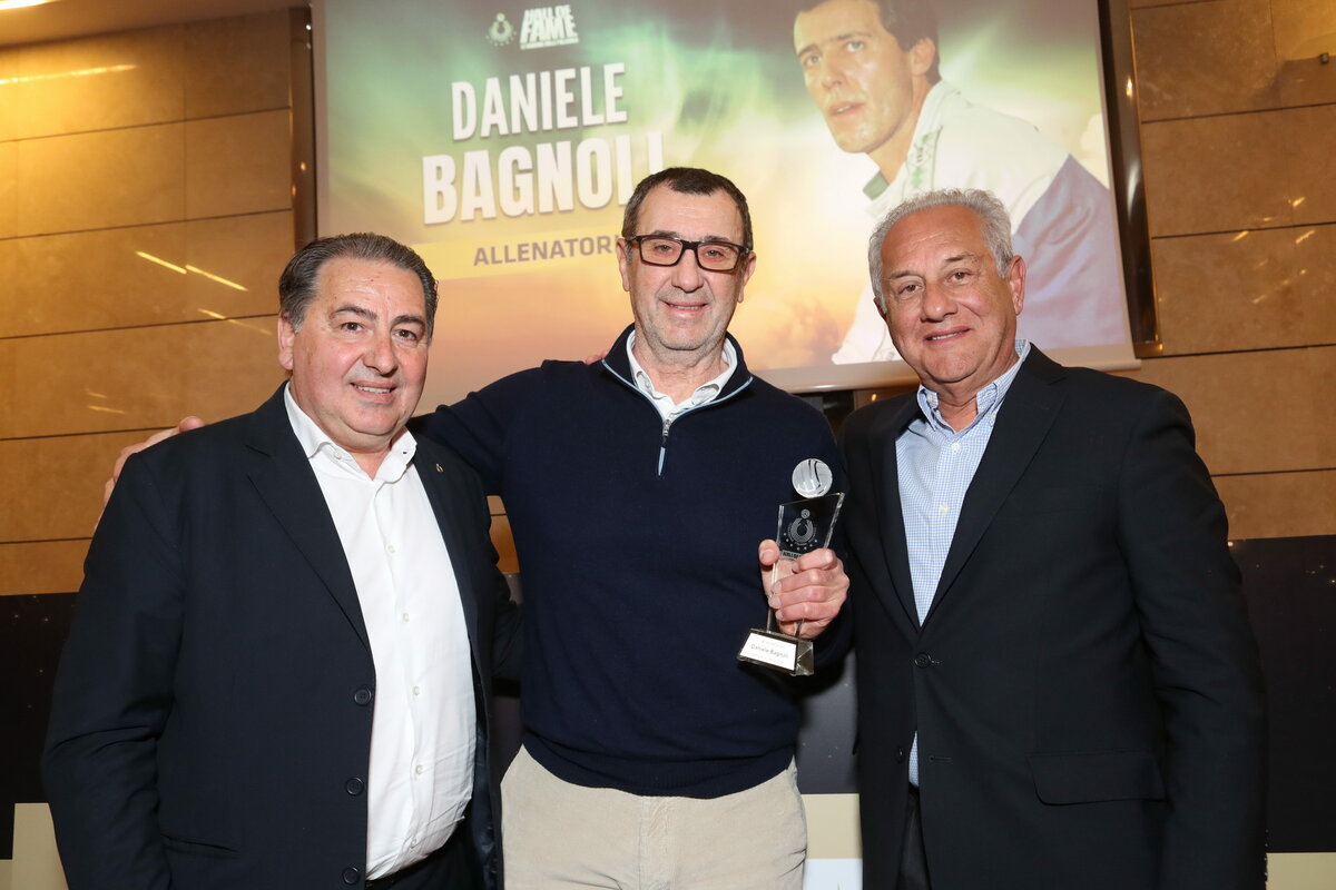 Allenatori: lo scomparso Daniele Bagnoli, ritira il premio il fratello Bruno Bagnoli, premiato da De Giorgi e Velasco.