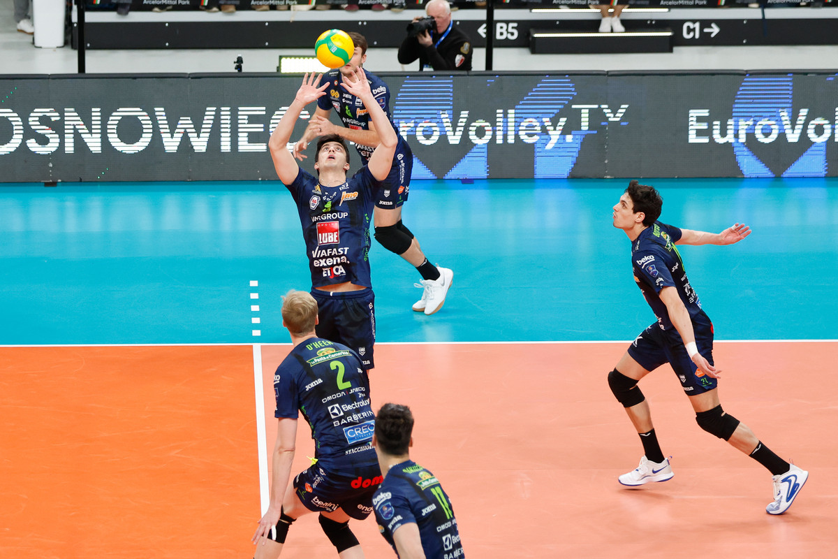 La Lube parte con un buon approccio offensivo, ma paga l’assenza di incisività al servizio. Nel primo set, nonostante buone percentuali in attacco, gli otto errori dai nove metri senza ace pesano nel finale, quando lo Zawiercie trova lo strappo decisivo.