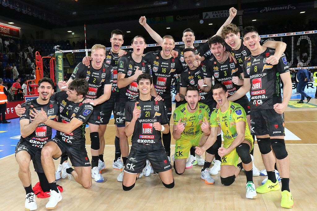 Nel quarto set Civitanova prova a scappare, poi subisce il rientro degli ospiti fino al 22-22, ma trova lo spunto decisivo con Bottolo e Nikolov. Il muro finale e l’errore di Darlan chiudono la gara sul 25-22.