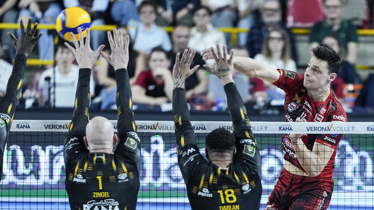 VERONA - Partita lunga, sporca, nervosa. Una di quelle che si spezzano e si ricompongono più volte, fino a diventare una prova di resistenza mentale oltre che tecnica. Alla fine è la Lube a spuntarla, grazie a un muro più solido nel momento giusto, a un gioco più presente al centro e a una maggiore lucidità nei frangenti decisivi. Decisivi anche i numeri: 10 ace a 6 per i marchigiani, mentre dall’altra parte pesano gli eccessivi 31 errori al servizio e 9 in attacco, che hanno tolto continuità e ritmo.