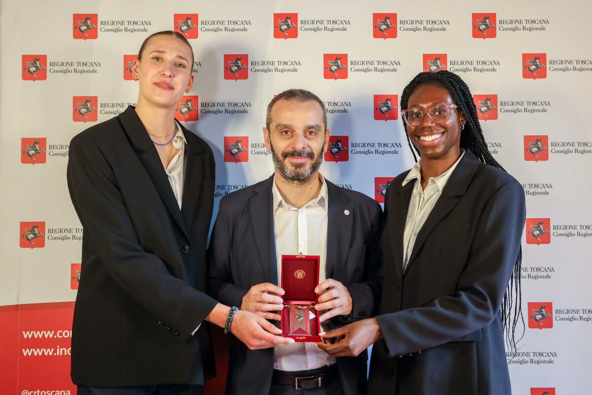 FIRENZE – Un riconoscimento istituzionale per una stagione già significativa. La Savino Del Bene Volley ha ricevuto il Gonfalone d’Argento, massima onorificenza del Consiglio regionale della Toscana, assegnata in seguito alla vittoria del Campionato del Mondo per Club conquistato lo scorso dicembre in Brasile.
