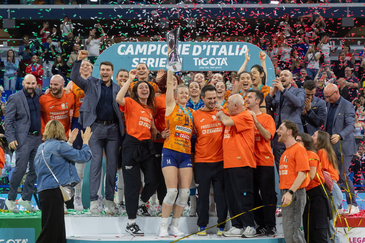MILANO - “Arancia Meccanica”. Conegliano sceglie la maglia orange per Gara 4 e chiude all’Allianz Cloud la finale tricolore 2025/26, conquistando il nono scudetto della propria storia, l’ottavo consecutivo. Più vincente dell'Olanda di Johan Cruijff. Dal calcio totale al volley totale, il passoè breve per raccontare una squadra, una società di successo.
