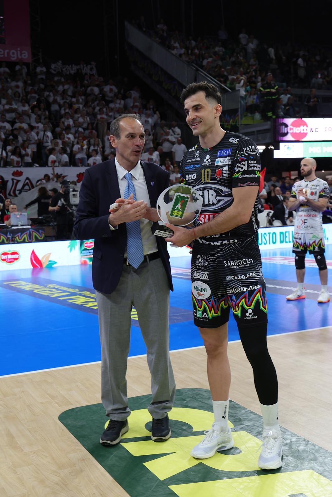 1° set - La finale si apre con la premiazione di Ben Tara, opposto Sir, MVP Credem Banca delle semifinali